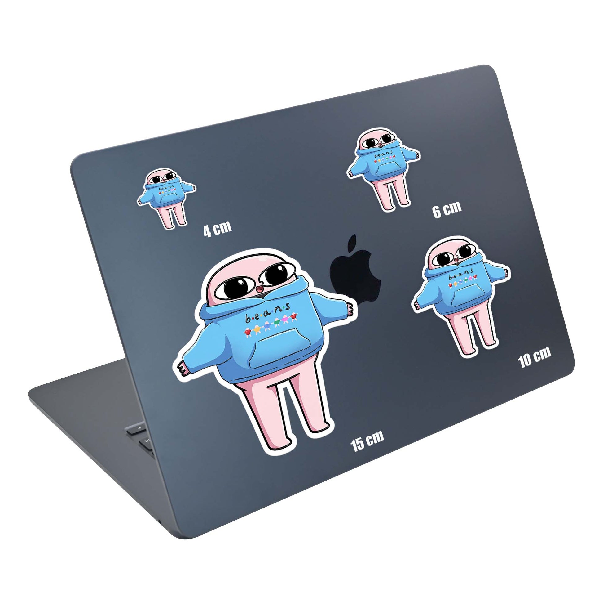 Sticker’lar 4, 6, 10, 15 ve 20 cm ölçülerinde sunulur; belirtilen ölçü en uzun kenarı ifade eder.